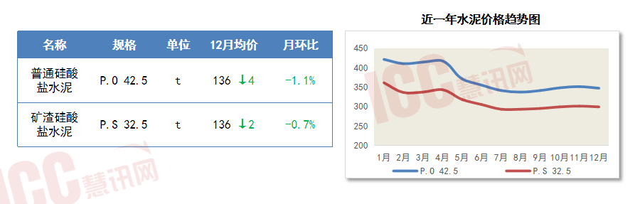 12月各省错峰停窑力度进一步加大,具体来看,水泥价钱微幅下跌。